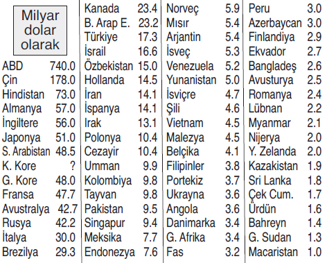 DÜNYA.......... ORDULARIN HARCAMALARI