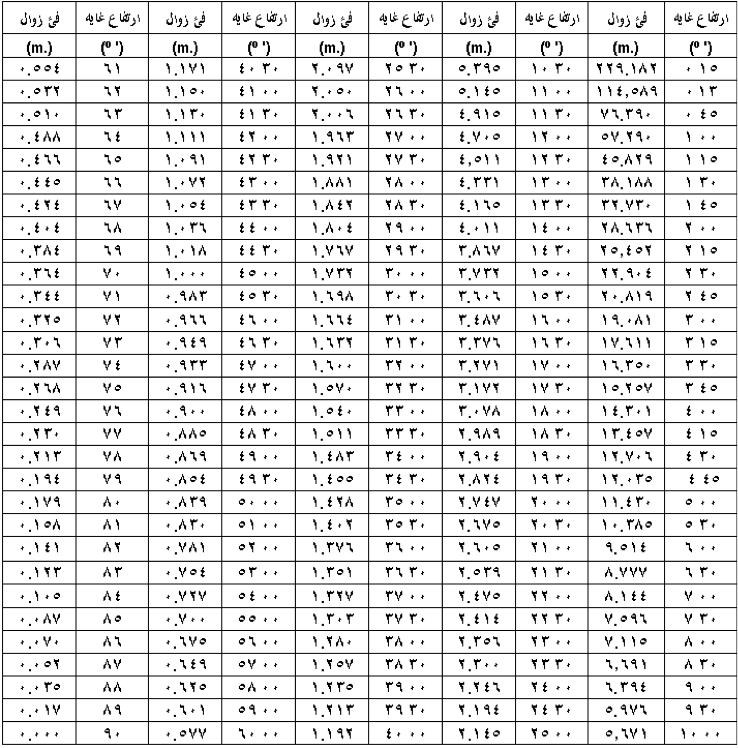 Uluslararası Kamerî Aybaşları ve Hicrî Takvîm Birliği Kongresi 28 - 30 MAYIS 2016 / İSTANBUL - TÜRKİYE برای هر درجه عرض، جدول ارتفاعات نماز عصر