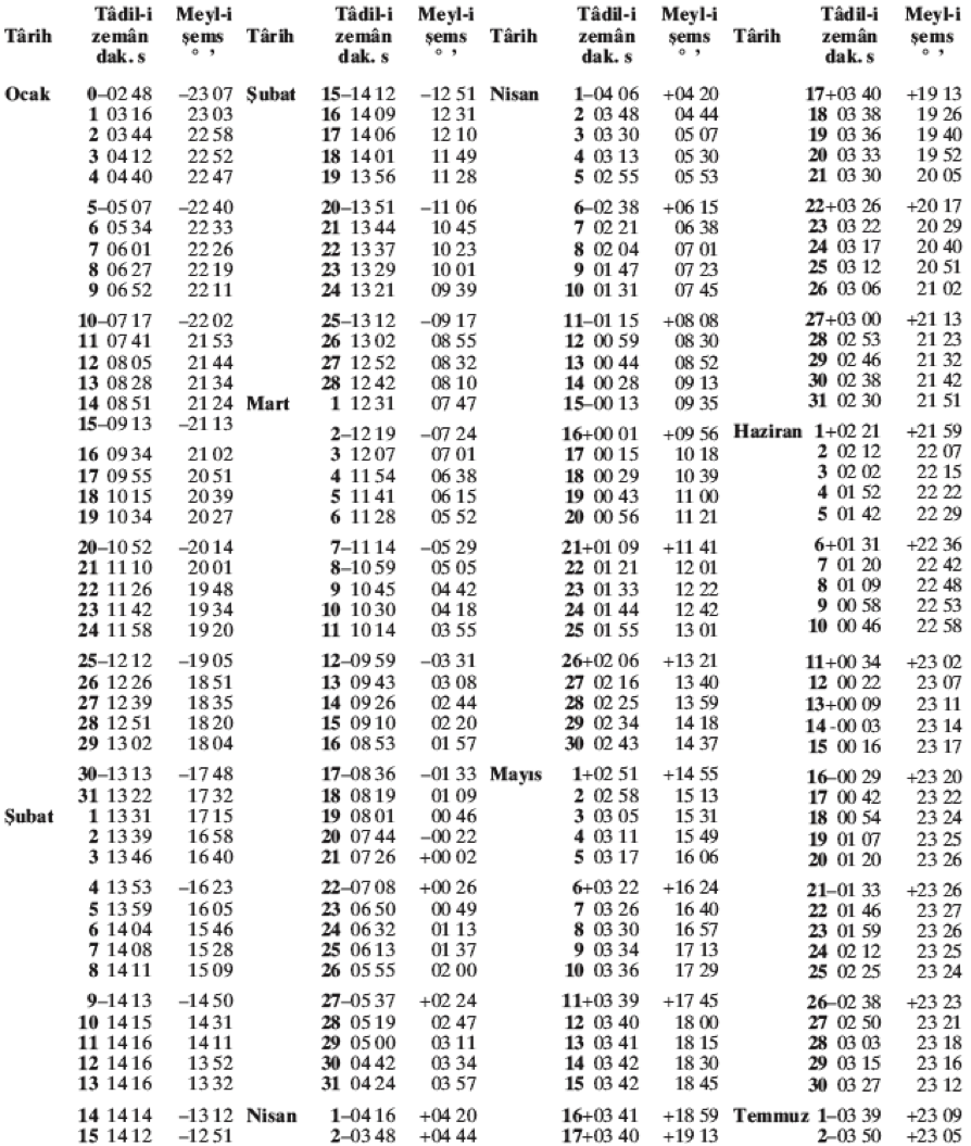 Uluslararası Kamerî Aybaşları ve Hicrî Takvîm Birliği Kongresi 28 - 30 MAYIS 2016 / İSTANBUL - TÜRKİYE جدول تعدیل زمان و میل شمس