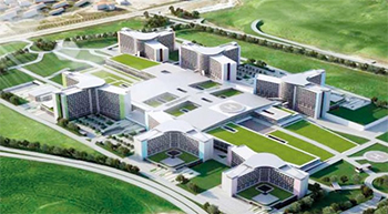 Resimde görülen bu hastane kompleksi, 4.200 yataklı, içinde 10 hastane bulunan hastane külliyesi yapılacak. İçine ambulans uçakların ineceği büyüklükteki bu hastane projesi de 2023’te tamamlanmış olacak.